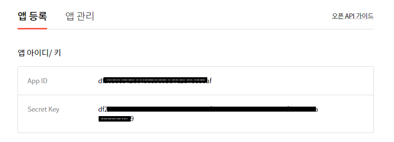 발급받은 아이디와 키로 API접속를 이용할 수 있습니다.