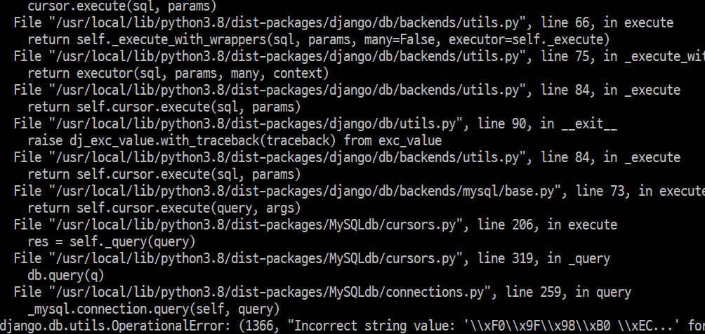 | [django] django.db.utils.OperationalError: (1366, "Incorrect string value: 에러 해결하기 (0) | 2021.07.02 |